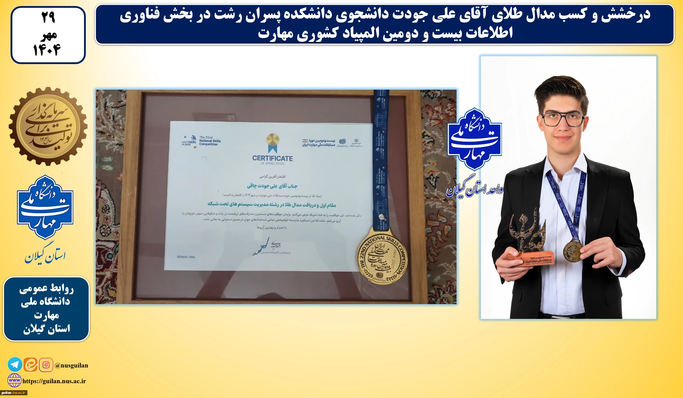 درخشش و کسب مدال طلای آقای علی جودت دانشجوی دانشکده پسران رشت در بخش فناوری اطلاعات بیست و دومین المپیاد کشوری مهارت 2
