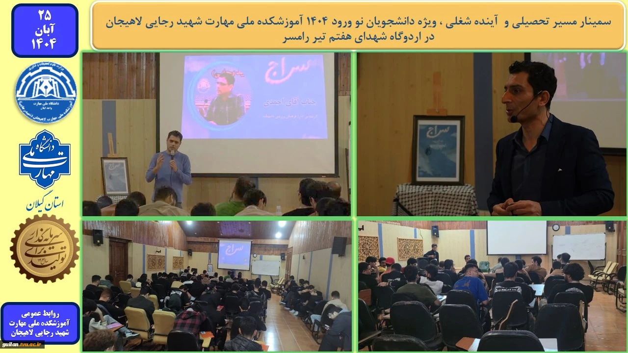 امتیاز دهید : سمینار مسیر تحصیلی و آینده شغلی ، ویژه دانشجویان نو ورود 1404 آموزشکده ملی مهارت شهید رجایی لاهیجان-در اردوگاه شهدای هفتم تیر رامسر 2 چهارشنبه 28 آبان 1404 ساعت 11:27