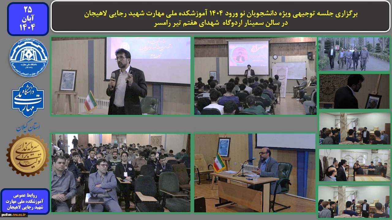 برگزاری جلسه توجیهی ویژه دانشجویان نو ورود 1404 آموزشکده ملی مهارت شهید رجایی لاهیجان - در سالن سمینار اردوگاه  شهدای هفتم تیر رامسر