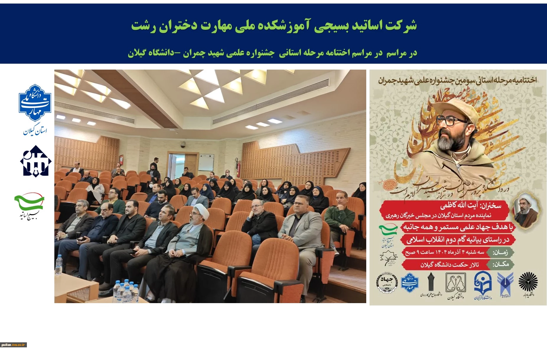 امتیاز دهید : شرکت اساتید بسیجی آموزشکده ملی مهارت دختران رشت در مراسم اختتامه مرحله استانی جشنواره علمی شهید چمران در دانشگاه گیلان 2 شنبه 8 آذر 1404 ساعت 10:43