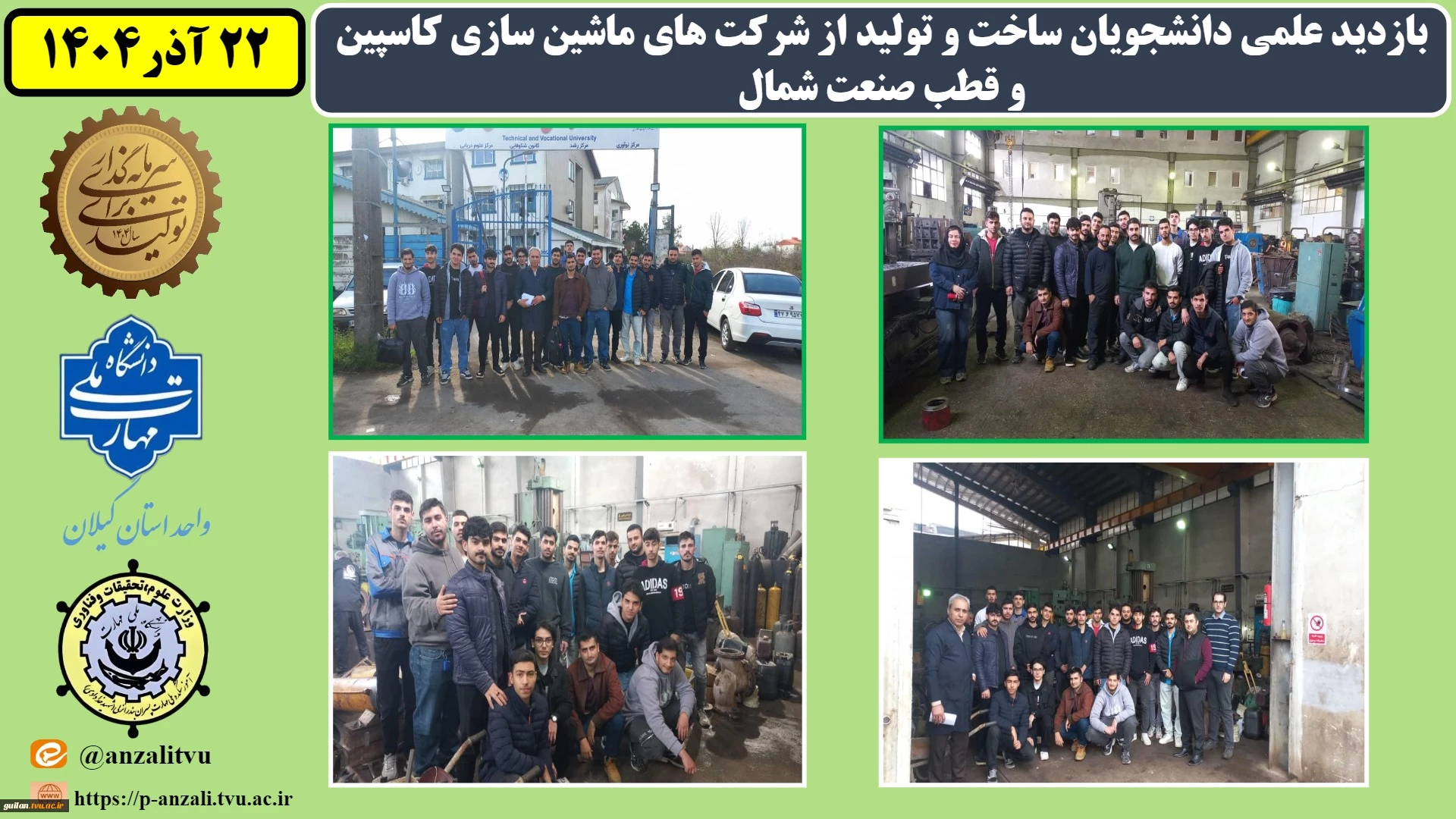 بازدید علمی دانشجویان ساخت و تولید از شرکت های ماشین سازی کاسپین و قطب صنعت شمال به مناسبت هفته پژوهش