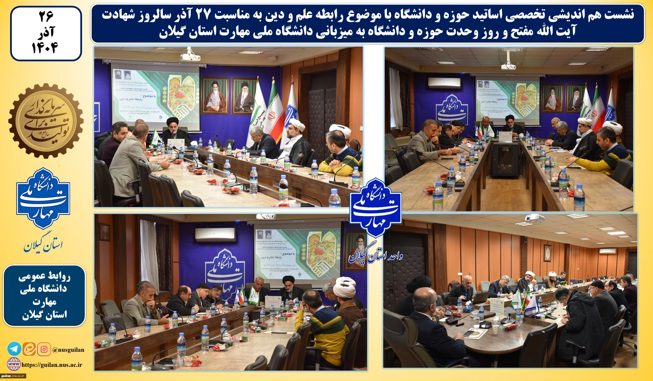 دانشگاه ملی مهارت استان گیلان نشست هم اندیشی تخصصی اساتید حوزه و دانشگاه با موضوع رابطه علم و دین را میزبانی نمود. 2