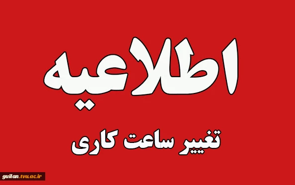 امتیاز دهید : تغییر ساعت کاری دانشگاه ملی مهارت از اول دی 1404 الی 15 فروردین 1405 به استناد مصوبه هیات دولت و بخشنامه دانشگاه 3 یکشنبه 30 آذر 1404 ساعت 14:41